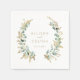 Rustic wedding napkins feature faux gold foil leaves, watercolor eucalyptus botanical greenery wreath and modern chic script and font, elegant and romantic, great for modern rustic wedding, botanical garden wedding and boho country wedding.