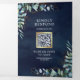 Rustic Eucalyptus Gold Navy Blue QR Code Wedding Tri-Fold Invitation