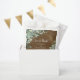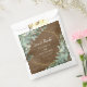 These rustic boho watercolor botanical wedding favour bags feature bouquets of sage green eucalyptus greenery decorating a gold geometric frame, with a rustic wood background.