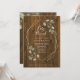 This rustic and trendy baby shower brunch invitation features simple green watercolor eucalyptus leaves and foliage on a faux gold geometric centre frame. The background is made to look like rustic brown wood.