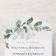 This modern wedding invitation with its watercolor eucalyptus leaves can be personalized with details of the event.