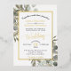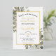 These beautiful wedding invitations feature a rustic design with hand painted watercolor eucalyptus leaves and pine branches in shades of sage green, olive, and silver. The silver accents are done in real foil, making this invitation both elegant and classy. The muted colours are perfect for a winter ceremony.