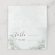 At your wedding reception, our table cards continue the theme with a graceful eucalyptus leaf motif on a watery background. They guide your guests to their designated tables, creating a serene and cohesive atmosphere.