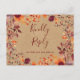 A rustic fall autumn leaves RSVP card with chic typography on a kraft paper background. The reverse features your details and a fun guest song request. Designed by Thisisnotme©