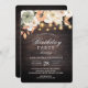 Celebrate in style with this elegant rustic birthday party invitation featuring soft vintage florals, warm string lights, and a dark wood background. Perfect for fall birthdays, adult milestone parties, or cosy garden gatherings. This timeless design blends charm and sophistication — great for women, men, or joint parties!