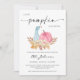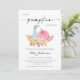 Gender neutral little pumpkin baby shower invitation featuring a blue and pink pumpkin and some autumn foliage. This little pumpkin baby shower invitation is ideal for a autumn or fall baby shower.