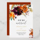 Rustic boho floral Wedding / Elopement Announcement with Reception Invitation featuring a watercolor painted floral bouquet with warm and earthy shades of burnt orange, terracotta and deep burgundy. Below is the message "We're Married" along with your names in real gold foil. This elegant Reception Only Invitation with the rich shades of autumn is great for a fall celebration and is perfect for a couple who is already married and wants to celebrate with family and friends after they have eloped.