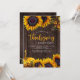 Rustic modern burnt orange botanical frame with sunflowers, fall leaves, and pumpkin Thanksgiving / Friendsgiving Dinner Party invitation with chic golden script on a dark brown barn wood background. +++++ Suitable for an elegant rustic country Thanksgiving party.