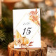 Rustic Fall Gold Floral Pumpkin Wedding Table Number