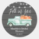 Fall in Love Fall Rustic Bridal Shower Sticker - on Barnwood with a quaint farm truck filled with a pumpkin harvest. String Lights are having overhead. Background is barnwood. Stickers are part of a collection.