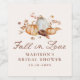 Bring warmth and elegance to your celebration with these fall bridal shower wine labels, featuring watercolor pumpkins, autumn florals, and cosy foliage in earthy seasonal tones. “Fall in Love” is displayed in graceful brown handwritten script, with the bride-to-be’s name and shower date printed below on a soft cream background. Perfect for bridal shower wine bottles, welcome gifts, or signature drinks, these personalised labels add a stylish and seasonal touch to autumn bridal showers, baby showers, or any fall gathering.