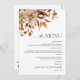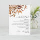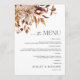 Add a touch of romance and warmth to your wedding day with the 'Rustic Fall Leaves Wedding Flat Menu. Featuring a delicate design that captures the beauty of autumn, the blend of golden, red, and orange leaves harmonises perfectly with a rustic theme. This menu is sure to stand out at your wedding reception, offering each guest a unique experience while bringing a cosy, fall-inspired atmosphere to your celebration.