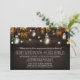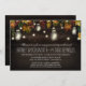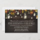 Rustic Fall Mason Jar Engagement Party Invitations - features a rustic barn wood background with maple, oak and other leaves in fall colours -- red, burgundy, yellow, green and orange with string glowing lights through out. Mason jars filled with lights or fireflies are also added to the design.