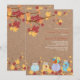 A rustic invitation with autumn leaves and four mason jars. One jar holds a small flower arrangement. It's all featured with a cork background. Suitable for any fall celebration. (<a href="http://www.freepik.com/free-vector/sketchy-mason-jars-collection_824730.htm">Designed by Freepik</a>). (<a href="http://www.freepik.com/free-vector/background-with-hand-drawn-branch_926403.htm">Designed by Freepik</a>). (<a href='http://www.freepik.com/free-photo/background-of-cork-texture_1075231.htm'>Designed by Freepik</a>). <br/><br/>The card is easy to customise with your wording, font, font colour, paper shape options and choice of six paper types.<br/><br/>Not exactly what you're looking for? All our products can be custom designed to meet your needs at no extra charge.<br/><br/>Simply contact us at askcottonlamb@gmail.com.<br/><br/>Coordinating products available: Just ask us!