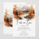 Escape to a serene autumn mountain retreat with your wedding couples shower invitation. Using the "fall in love" bridal shower theme, this exquisite design showcases a breathtaking watercolor painting of a majestic mountain, surrounded by trees adorned with fall foliage, their beauty flanking the serene waters. The muted natural tones of tan, brown, rust, gold and greys create a timeless and sophisticated atmosphere, reminiscent of a peaceful alpine escape at the pinnacle of the fall season. The clean white background and modern font text add a touch of contemporary elegance, balancing the natural beauty of the scene. This invitation will not only announce your special day but also set the perfect tone for a truly memorable celebration, inviting your guests to join you on a journey of autumn tranquillity and love. Created by Simply Farmhouse Press.