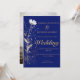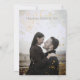 A romantic bundle of pressed silver, gold and white wildflowers and botanicals adorn your rustic wedding invitation. Splashes of cool blue and pearly white sketching add a bohemian charm on the gorgeous deep navy sapphire blue background. Ombré gold script echos the soft metallics in the pressed flower bouquet. Your couple photo splashed with gold overlay flecks makes your wedding invitation a lovely keepsake.