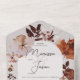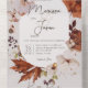AVAILABLE WITH OR WITHOUT A QR CODE TO SCAN OR WITH OR WITHOUT DINNER SELECTION OPTIONS. This design features soft autumn wreath of tan, brown, rust, purple and cream on a soft grey beige background. Personalised All-In-One invitations are a unique combination of both a beautifully printed custom invitation with an easy to tear off perforated RSVP postcard. And they are so easy to use! You simply fold, then seal the back flap with the three included clear stickers, and mail. And when your guests receive your custom invite, they just tear the perforated RSVP Card off and drop it back in the mail to you!