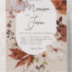 AVAILABLE WITH OR WITHOUT A QR CODE TO SCAN. This design features soft autumn wreath of tan, brown, rust, purple and cream on a soft, light tan background. Add a QR code to your invitation so that gusts can quickly access your wedding Website for details, directions, menu options, and more, or add your gift registry Web URL. Personalised All-In-One invitations are a unique combination of both a beautifully printed custom invitation with an easy to tear off perforated RSVP postcard. And they are so easy to use! You simply fold, then seal the back flap with the three included clear stickers, and mail. And when your guests receive your custom invite, they just tear the perforated RSVP Card off and drop it back in the mail to you!