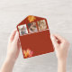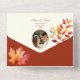 Celebrate your love with this rustic autumn wedding invitation featuring warm fall leaves, a photo section, and a convenient QR code for RSVP. Perfect for seasonal weddings, this eco-friendly design offers a fold-and-send format for easy mailing.