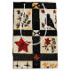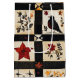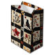 This gift bag showcases a rustic quilt-inspired pattern arranged in squares and rectangular blocks with warm autumn motifs. The patchwork features pumpkins, a black bird with a reddish breast, hearts, red stars, and floral branches in earthy shades of red, orange, and brown. Geometric accents like plaid and cross-stitch textures add to the handmade feel. With a cosy farmhouse aesthetic in black, cream, and fall tones, this pattern is perfect for autumn décor, primitive country style, and rustic harvest season charm.