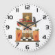 Rustic Fall Scarecrow with Pumpkins and Crow Large Clock
