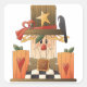 Rustic Fall Scarecrow with Pumpkins and Crow Square Sticker
