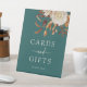 Rustic Fall Teal Pedestal Sign. Add warmth and elegance to any corner of your venue with this rustic pedestal sign from the Teal Terracotta Fall Leaves Floral Collection. Designed with rich teal tones and hand-painted artwork of burnt orange and terracotta leaves, beige dahlias, and coppery florals, it’s ideal for gift tables, bars, or welcome stations. The compact size and sturdy design make it easy to display wherever you need a stylish signage solution. Personalise it and let every detail reflect your fall wedding vision.