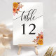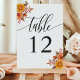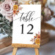 Rustic Fall Watercolor Floral Autumn Wedding Table Number