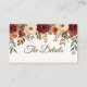 Make your wedding stationery complete with this elegant Rustic Fall Wedding Enclosure Card. Designed with watercolor burgundy roses, burnt orange dahlias, eucalyptus greenery, and golden autumn leaves, this card is perfect for autumn weddings.