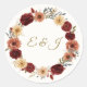 Rustic Fall Wedding Round Sticker | Burgundy Roses