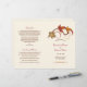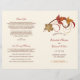 Drifting autumn leaves and graceful scrollwork bring seasonal warmth to this rustic fall ceremony program. "Wedding Of" appears in elegant script against a soft cream background, with rich red, gold, and copper leaf accents framing your names and wedding details. Inside pages are fully customizable for your bridal party, ceremony order, and a personal thank you message on the back cover. Programs are printed on text-weight paper and arrive flat, requiring a simple center fold.