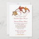 Rustic elegant wedding invitation design features a fall theme with autumn foliage and scrolling swirls. Rich autumn colour scheme includes shades of orange, copper, brown, red and gold.