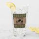 Beautiful, rustic themed glass beverage cups, featuring your family name and cabin, lodge, cottage or other desired text and its established date. This unique, custom design features a silhouette of a bull moose and pine trees on a burlap style print, accented with beautiful French country plaid in soft shades of grass and sage green. To see more designs like this, feel free to visit my store here at "Zazzle.com/Rustic_Charm". Thanks.