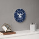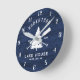 Rustic Family Lake House Fir Tree Navy Blue Wood Round Clock