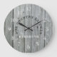 A rustic wall clock with a grey wood panel print for a stylish look for your country style kitchen. Personalise with your family name or monograms.