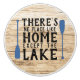 There's no place like home, except the lake! Two blue boat oars on the side with a faux wooden background.