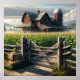 Ai art depicting a rustic old farm house in back of a corn field. Out front of the weathered fences is a little stand wtih boxes of corn on the cob giving away for free!
