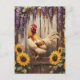 Rustic Farm Rooster with Sunflowers and Wisteria Postcard