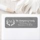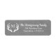 Farmhouse chic address labels featuring a white country deer antlers silhouette encircling your family's monogram letter in white. The background is a grey faux weathered burlap print.