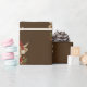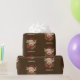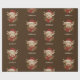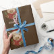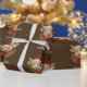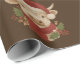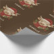 This festive wrapping paper features a Highland cow in embroidery style, wearing a Santa hat and scarf on a brown background. Warm brown tones and rustic details add farmhouse charm, making it a cosy holiday accent. AI-assisted design ensures handcrafted texture.