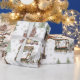 Rustic farmhouse on the country side, snowing in the background Christmas wrapping paper.