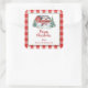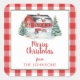Rustic Farmhouse Tractor Snow Christmas Square Sticker Label.  Farmhouse holiday stationary and gift wrapping.