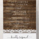 Rustic Farmhouse String Lights Lace Wedding Invitations on Wood background - includes beautiful and elegant script typography with modern Country Farm House Sparkle for the special Wedding day celebration.