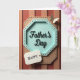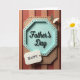 This Father's Day card features a layered octagonal frame in calm teal at the centre, giving a steady, caring feel like a reassuring dad 👨. Inside the teal shape, the words “Father’s Day” sit in dark lettering with a slightly raised look, centred and easy to spot. Behind it, a larger octagon in warm beige peeks out, edged with short dashed marks that resemble stitched trim for a cosy, crafted look. The background shows vertical wooden planks in reddish-brown and warm orange tones, with visible grain that adds a down-to-earth, garage-workbench mood 🛠️. Gentle lighting creates soft shadows between the layers, making the shapes look stacked and touchable, like a quiet gesture of appreciation. In the upper right, a small off-white butterfly rests lightly, adding a tender, affectionate note without stealing attention. In the lower left, a small tag reads “HAPPY” in dark text, tied on with a thin golden thread against the wood-plank backdrop.