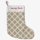 Rustic Faux Burlap and White Moroccan Quatrefoil Small Christmas Stocking