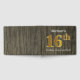 This guest book design features the ordinal number "16th" with a faux gold-like appearance. It also features a personalised name, and a rustic faux wood look background. It could be used at a party for somebody celebrating their sixteenth birthday. [~Z0000053]