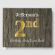 This guest book design features the ordinal number "2nd" with a faux gold-like appearance. It also features a customised name, and a rustic faux wood appearance background. It could be used at a party for somebody celebrating their second birthday. [~Z0000053]