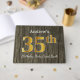 This guest book design features the ordinal number "35th" with a faux gold-like appearance. It also features a custom name, and a rustic faux wood appearance background. It could be used at a party for somebody celebrating their thirty fifth birthday. [~Z0000053]