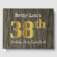 This guest book design features the ordinal number "38th" with a faux/imitation gold-like appearance. It also features a personalised name, and a rustic faux wood look background. It could be used at a party for somebody celebrating their thirty eighth birthday. [~Z0000053]