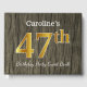 This guest book design features the ordinal number "47th" with a faux/imitation gold-like appearance. It also features a personalised name, and a rustic faux wood look background. It could be used at a party for somebody celebrating their forty seventh birthday. [~Z0000053]